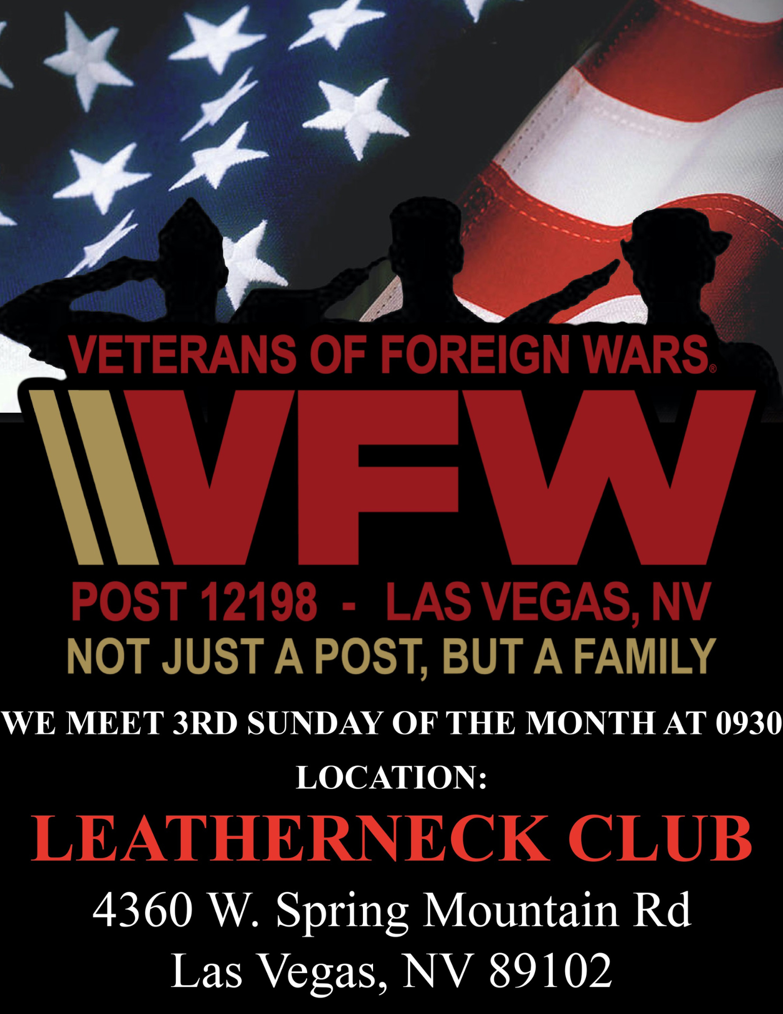 The Leatherneck Club - Las Vegas 4360 W Spring Mountain Rd,, Las VegasJoin us every 3rd Sunday of the month at Leatherneck Bar and Grill. Doors open at 0900. Meeting starts at 0945. Stay to socialize.